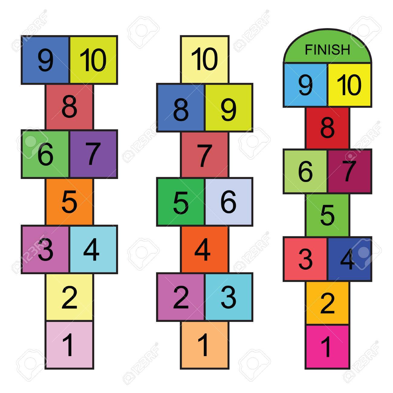 Con una tiza, dibujar un diagrama compuesto por 10 cuadros, luego escribe el número del 1 al 10, con diversos colores.